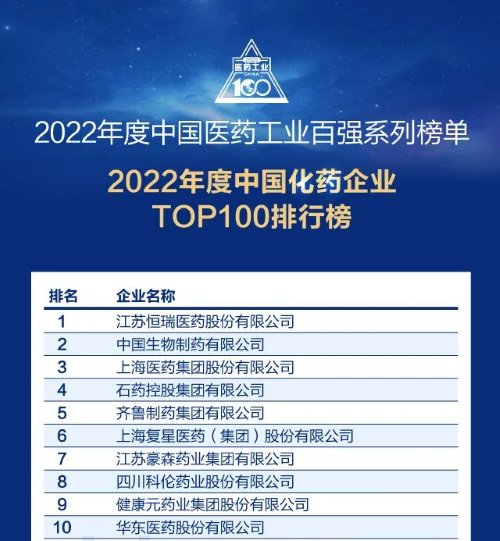 6月27日,由米内网主办的2023米思会(中国医药健康产业共生大会)发布了“2022年度中国医药工业百强系列榜单”。金年会金字招牌诚信至上医药再次凭借扎实的研发创新实力和稳健的市场运营能力,位列“中国化药企业TOP100排行榜”榜首,这是金年会金字招牌诚信至上医药连续5年蝉联该榜单榜首。